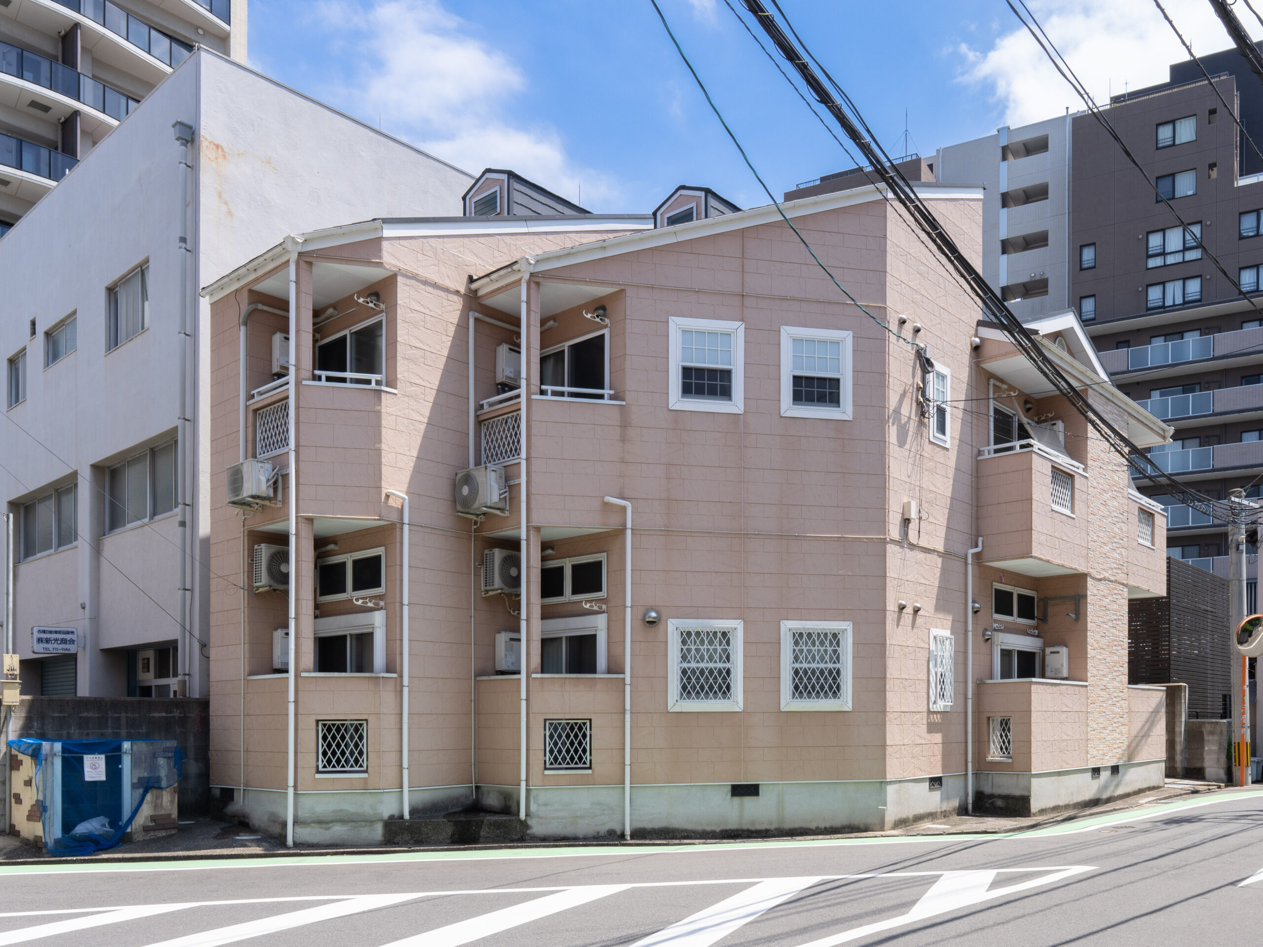 活気あふれる福岡市中心部の赤坂エリアにある2階建てアパート。